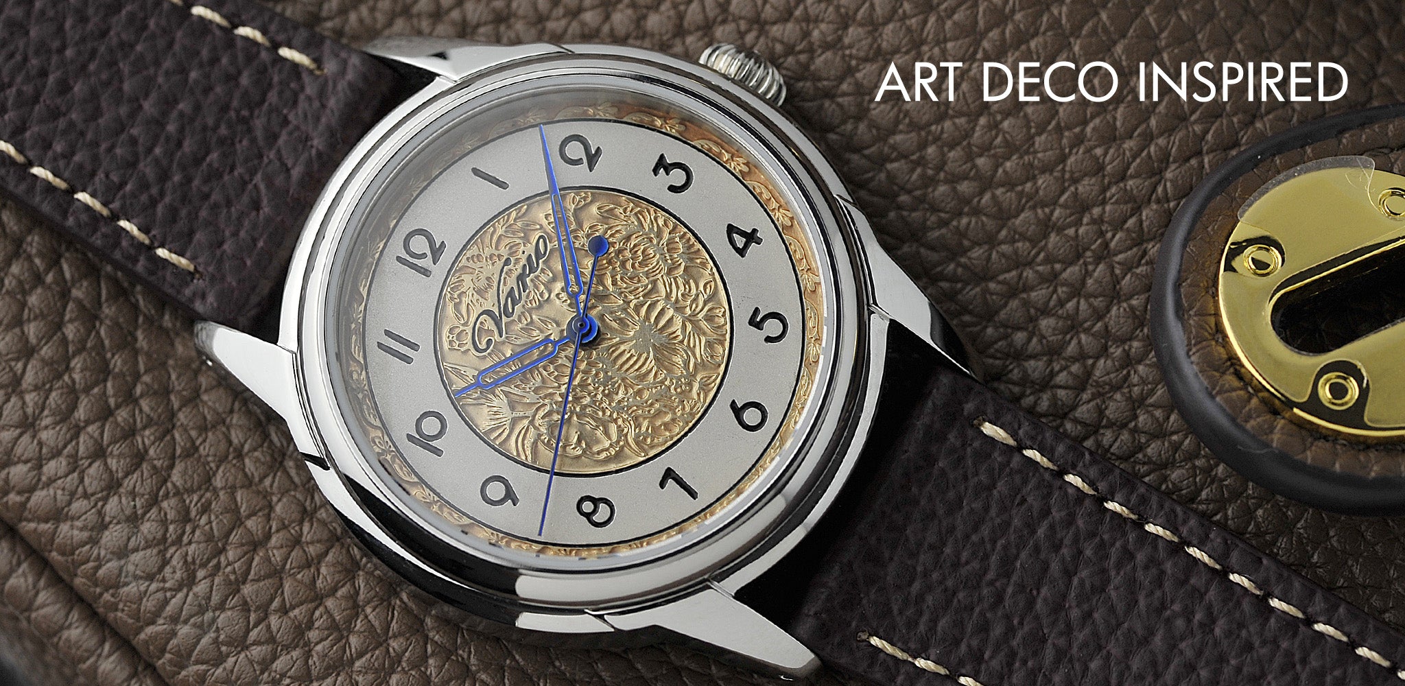 Inspired by sleek geometry, elegant typography and bold designs of the 1920s, Vario Empire Art Deco Chronograph Watch is merging time with timelessness